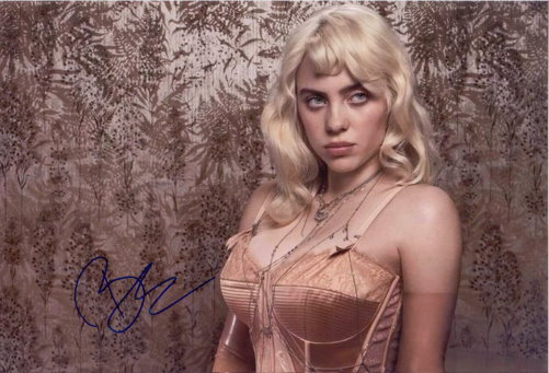 Autogramm von BILLIE EILISH auf Großfoto ca. 20x30cm.