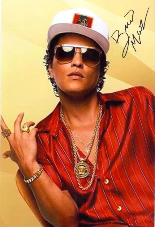 Autogramm von BRUNO MARS auf Großfoto ca. 20x30cm.
