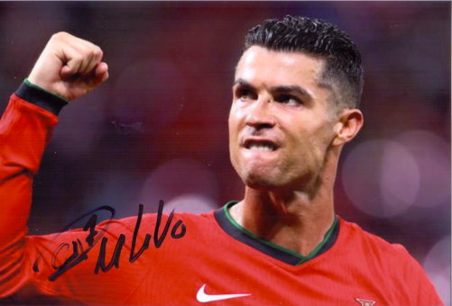Autogramm von CRISTIANO RONALDO auf Großfoto ca. 20x30cm.