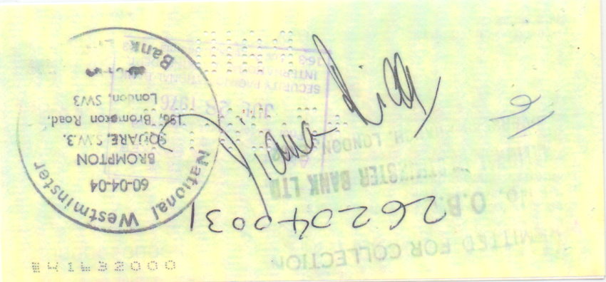 Autogramm von DIANA RIGG + besonderer Bankscheck