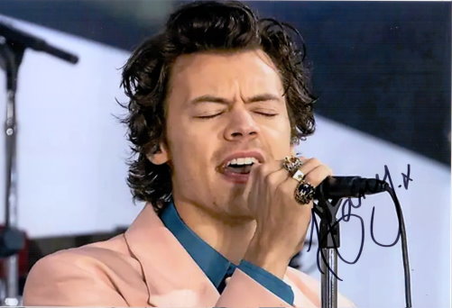 Autogramm von HARRY STYLES auf signiertem Foto ca. 20×30 cm.