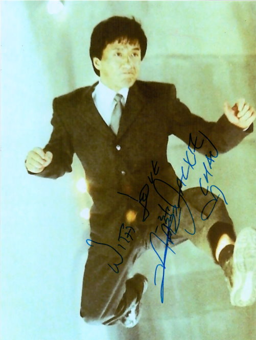 Autogramm von JACKIE CHAN auf Großfoto ca. 20x25cm