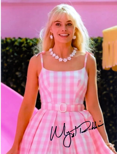 Autogramm von MARGOT ROBBIE als BARBIE auf Großfoto ca. 20x25cm.