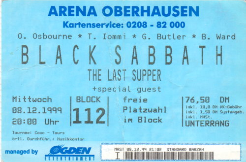 Am 08.12.1999 wurde die Arena Oberhausen Zeuge eines historischen Moments: BLACK SABBATH, die Urväter des Heavy Metal, kamen im Rahmen ihrer legendären „The Last Supper“ Tour nach Deutschland – und brachten die Halle zum Beben.