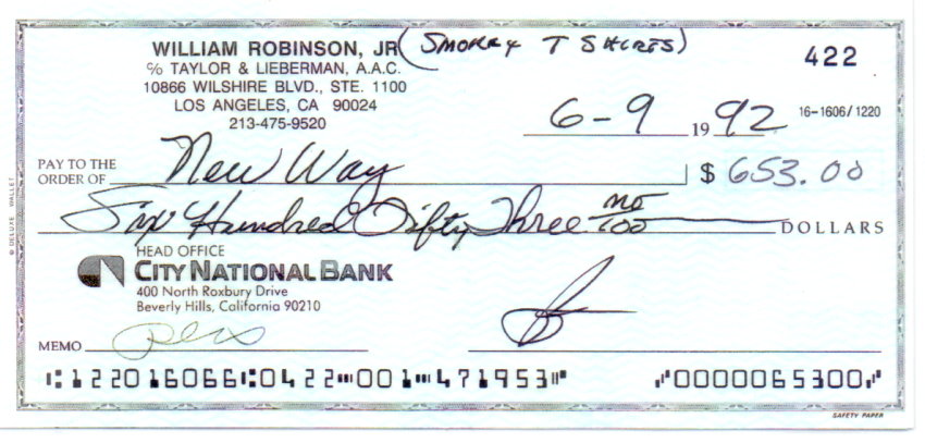 Autogramm von SMOKEY ROBINSON + Bankscheck